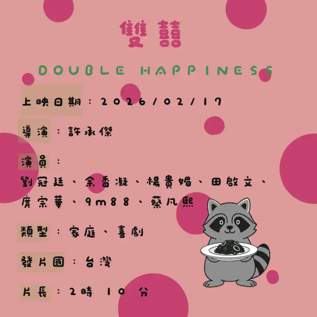 「墨魚麵」的黑讓人厭惡、警惕,但它的美味卻讓它榮升為世界頂級料理,當那一抹黑在唇齒間化開,伴隨調皮的露齒笑靨,彷彿生命縱使身處黑暗,也能綻放出最堅毅的純真與樂觀。「雙囍」,一對新人,兩場婚宴,從婚宴喜事帶出放不下的親情羈絆、創傷與夫妻間的相互扶持。